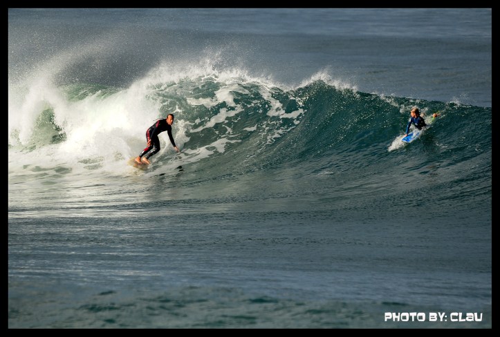Si juntas buenas olas, buena luz, un montón de hienas hambrientas de olas, y don Claudio en la orilla con su «pepino», la cosa no defrauda. Y así fué este sábado pasado.