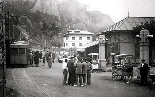 Ese edificio que veis a la derecha es donde ahora está La Toldilla, y entre esas dos columnas estaba la bajada a la playa.