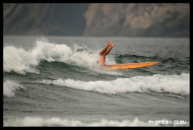 La «cucaracha», un movimiento clásico donde los haya, que proviene de haberse ido a la punta de la tabla y luego caerse hacia atrás. Un poco patético, lo sé.