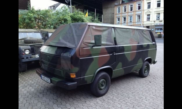 Esta que veis es una «ex» del ejercito aleman, Bundeswehr, con tan solo 42 mil kms, motor 1.7 y un estado francamente bueno. Además, sabiendo de mis gustos, lo del pintado «camo» es una apuesta segura. Como veis, tiene los cubre-cristales originales, muy curioso!