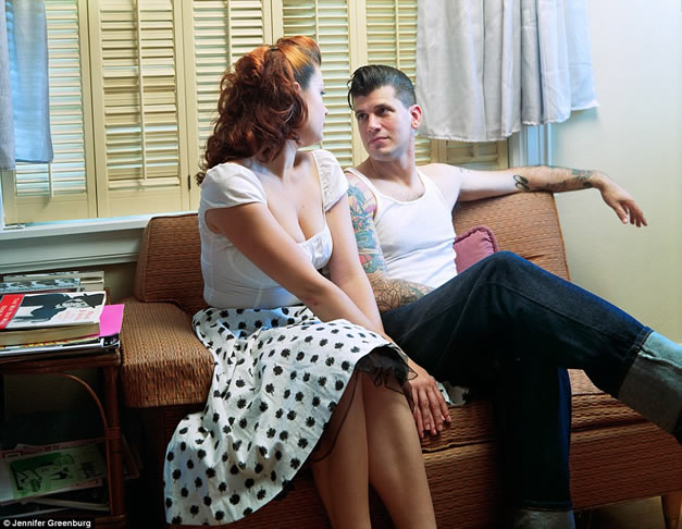Increible libro el de Jennifer Greenburg, que se ha pasado más de diez años fotografiando la comunidad yanqui de rockabillies. Como podeis observar por las imágenes, son gente que vive anclada en los años 50. Explican que todo empezó como una moda, pero se convirtió en una forma de vida. No doy crédito…