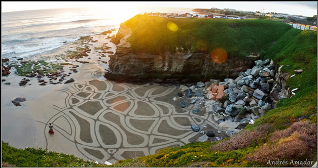 Andres es natural de San Francisco y empezó a dibujar sobre la arena en el año 2004. Os dejo con algunas cosas impresionantes.