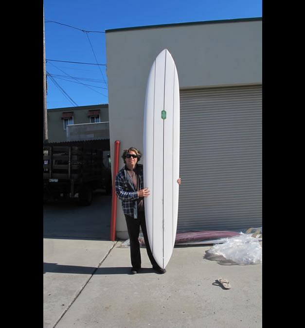 Josh ha crecido haciendo tablas de la mano del grandísimo Skyp Frye, así que tiene un buen maestro. Sus tablas son muy particulares, y no dejan indiferente a nadie. Esta es un 10’4″, una medida que no se ve a diario: es grande, muy grande. Pide 1300 € por ella y está en Pontevedra.