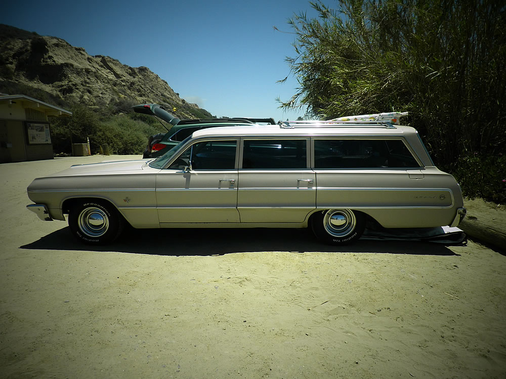 El que abre el post es un Chevrolet Impala del 64 que me encontré en San Onofre. Precioso, como podéis observar. El dueño me lo enseñó como quien muestra su juguete más preciado.