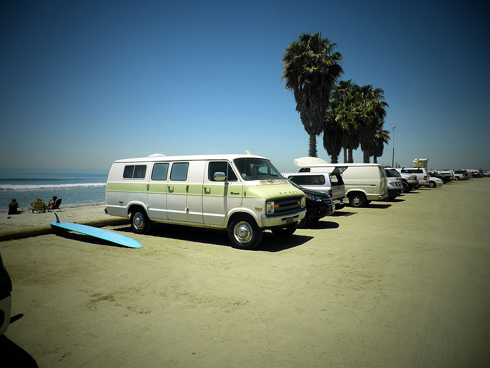 Y si, efectivamente el parking de San Onofre es tal y como os lo imagináis. Cada uno aparca mirando a la playa, y la lista de cacharros es de lo más variado.