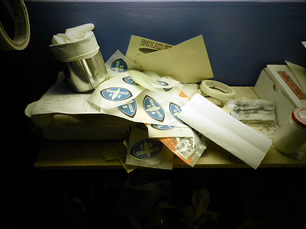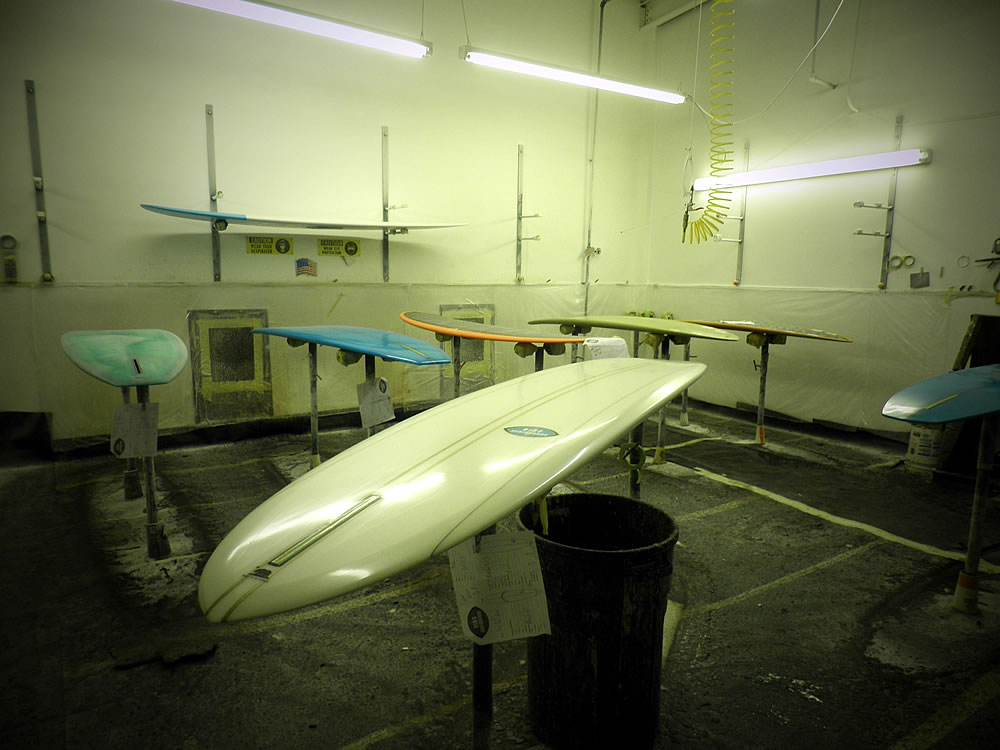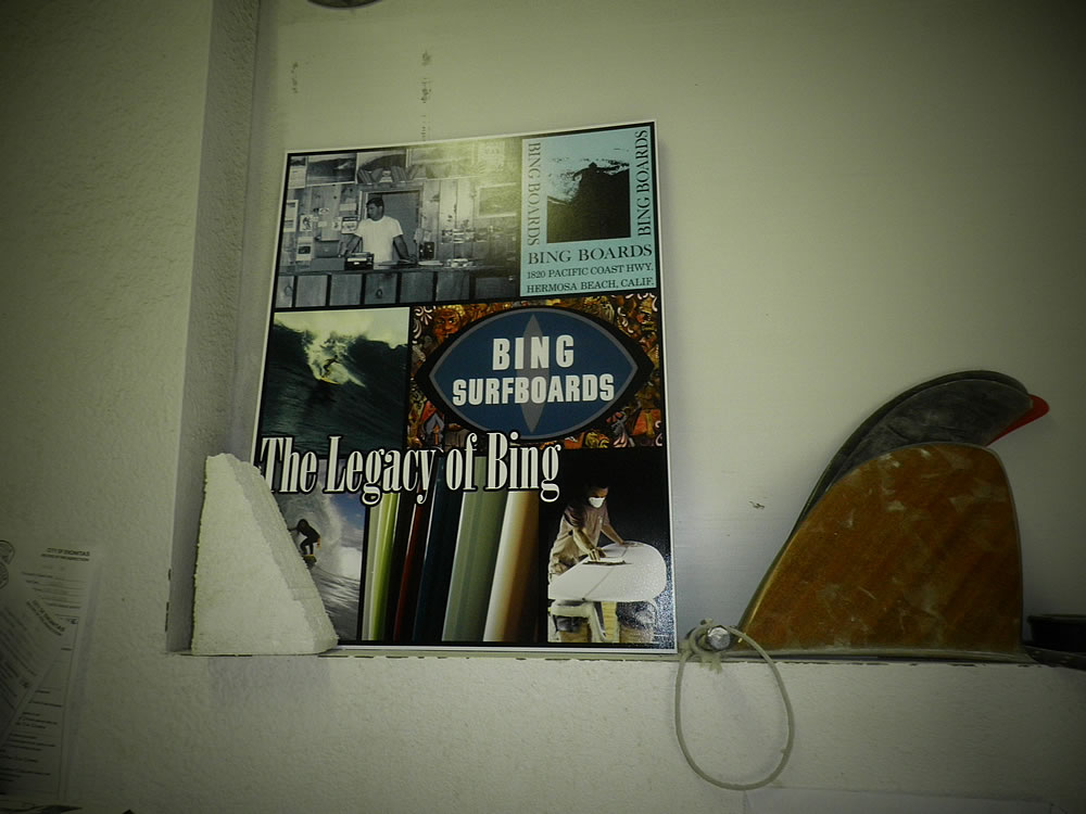 Es un local con mucha, muchísima historia. Lleva en pie desde los años 70 y la lista de fabricantes de tablas que han pasado por él es increible. Bing lo heredó de Channin hace unos cuatro años, cuando se trasladaron de Hermosa Beach a Encinitas. Una pequeña puerta de entrada no da idea de la cantidad de huecos y espacios interiores; aquello es un mundo.