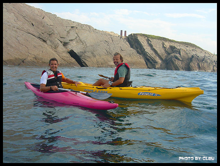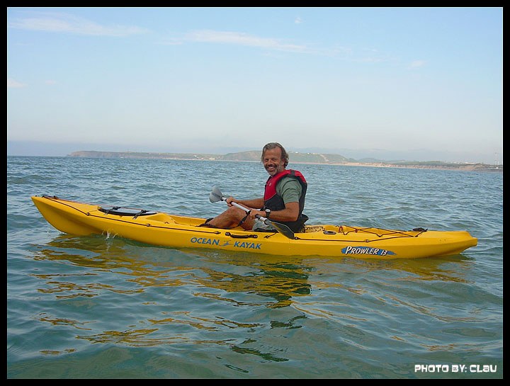 Vaya semanita que tenemos de plato absoluto y calor!!! Pues ante la total ausencia de olas el amigo Claudio ha tenido a bien invitarme a dar una vuelta en kayak por la costa. Una experiencia muy, pero que muy guapa que no puedo menos que agradecerle de veras. Ya estoy pensando en repetir!!!