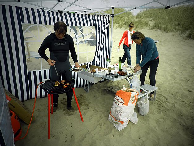 Los que nunca habéis ido os preguntareis de que va la cosa. Pues básicamente de pasar un día de playa guapo con un montón de amigos venidos de Cantabria y Euskadi básicamente. Charla, barbacoa, y algo de surfing claro, con la disculpa de llevarse para casa El Tableru.