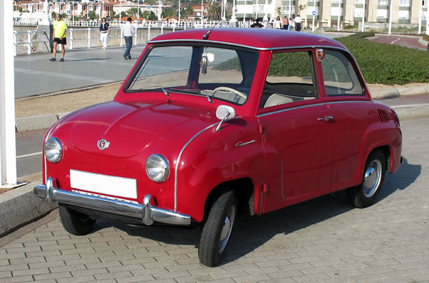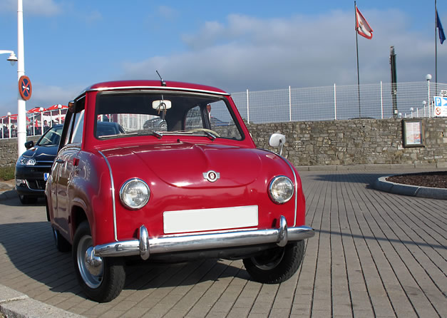 Acojonante el Goggomobil que circula por Gijón. Me cuenta Luis Bericua, que además me manda las fotos, que tiene unos 46 años y es de los últimos fabricados. Realmente parece de juguete pero no lo es. Los minicoches estuvieron de moda hace un tiempo y todavía perduran.