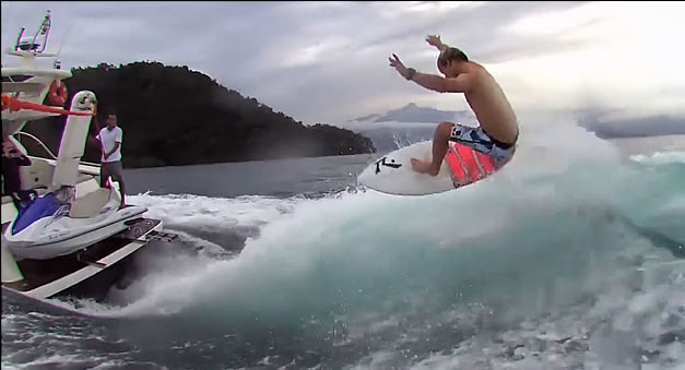 Qué pasada el vídeo. Había oído hablar del tema pero nunca me imagine que se pudiese surfear así en la ola de una barca.