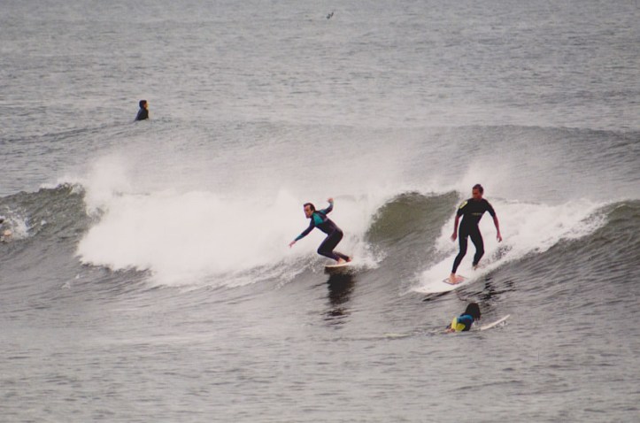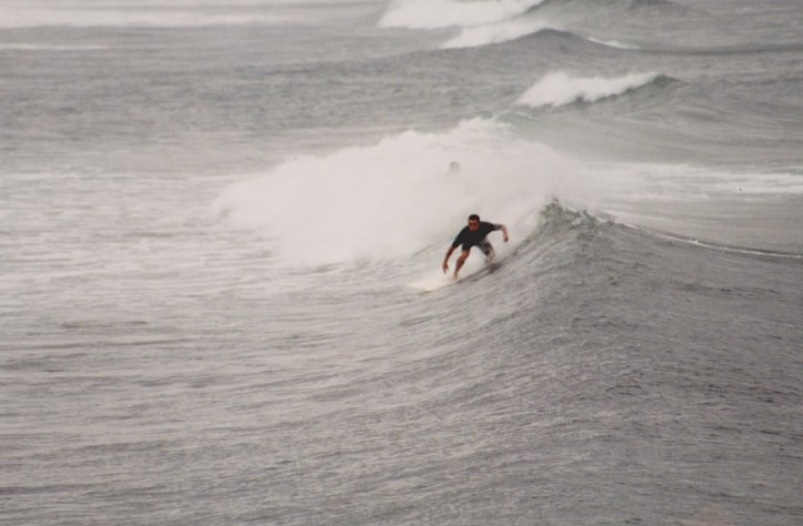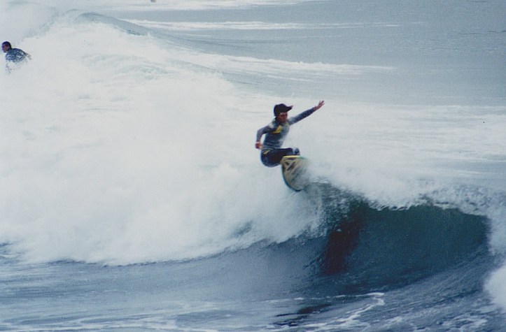 Enredando por casa me encontré media docena de fotos, analógicas por supuesto, que no se siquiera quién las hizo. Son de un baño en San Juan, creo que en los años 90, con el espigón de entonces y a media marea. Las olas no son nada del otro mundo, pero estas cosas siempre tienen su cosa. Los que vivisteis esa época seguro que os gusta.