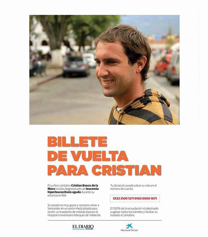 Cristian se fue a surfear a Indonesia hace ya unas semanas, con todo lo necesario, incluyendo un seguro médico.