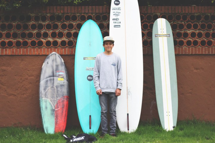 A mi me gustan todas las tablas en general, en mi quiver lo que mas tengo son tablas con formas clásicas, que es el surfing que me gusta, suelo surfear mucho mi longboard porque creo que es donde mejor me desenvuelvo y lo que vi en casa desde pequeño, tengo también un single 6,9 que utilizo con olas grandes, hace poco los chicos de Banger me han hecho un fish twinfin, super divertido, aunque aún tengo que aprender a surfearlo bien.