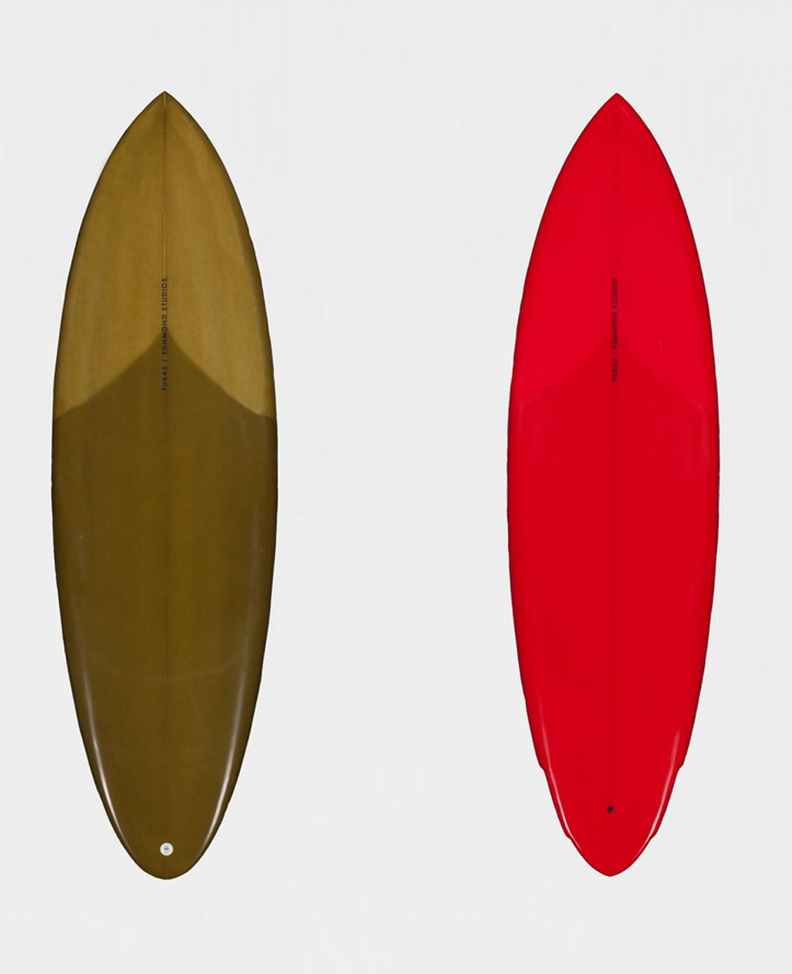 Han convencido a la gente de Pukas para crear una linea de tablas a su gusto. Un par de fishes, un single pequeñito y por supuesto, un tablón; tablas con buena pinta, con una estética muy cuidada y a punto de caramelo.