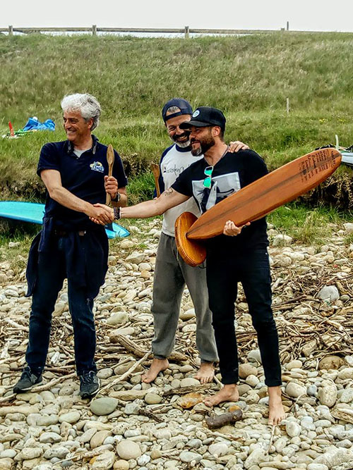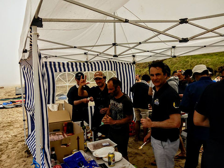 La competición fue algo así como «entras al agua, pillas tres olas y sales a dar el testigo al siguiente». Así de sencillo porque si nos poniamos a hacer mangas nos volvíamos chiflaos y no llegabamos a la comida, que era lo realmente importante.