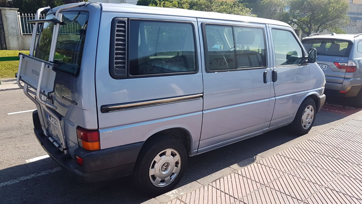 En fin, que como veis es una Volkswagen T4 del año 96, modelo Caravelle. Monta un 2.5 de 5 cilindros y 78cv con más de 500mil kms, aunque el motor esta cambiado no hace mucho. Esta muy sano de óxido, aunque tiene algún rayón en la chapa.