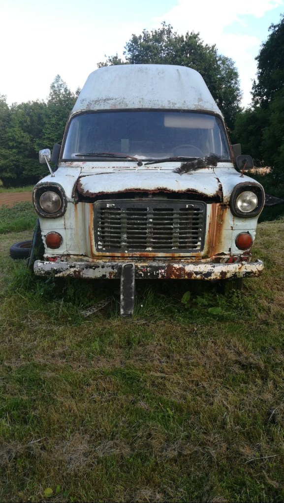 Al cabo de un tiempo el dueño se trasladó tierra adentro y aparcó la furgo en un prao, al «raso». Se pasó años ahí parada lloviéndole por encima y abandonada completamente a los elementos. Su estado era de abandono absoluto.